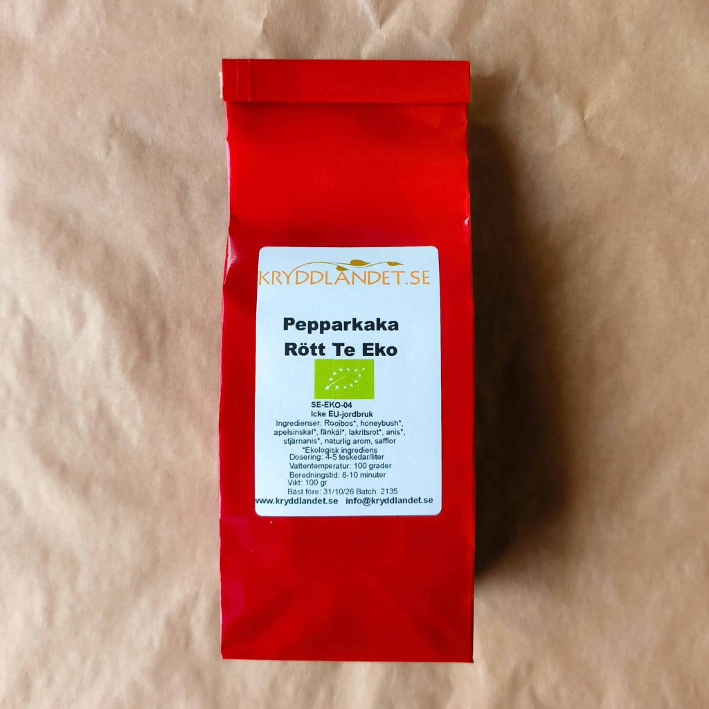 Pepparkaka är en teblandning av ekologisk rooibos, söt honeybush och julens kryddor och smaker. Detta te har en tydlig smak och doft av pepparkaka - ett perfekt te för alla som inte kan få nog av julen och en fin julklapp till te-älskaren.