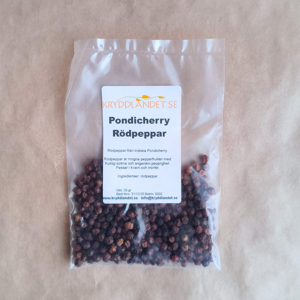 Kryddlandet är Sveriges största krydd- och tebutik. Hos Kryddlandet kan du köpa pondicherry rödpeppar till bra pris & snabb leverans. I Kryddlandets breda sortiment finns även ett stort utbud av ekologiska kryddor & många förpackningsstorlekar att välja på!