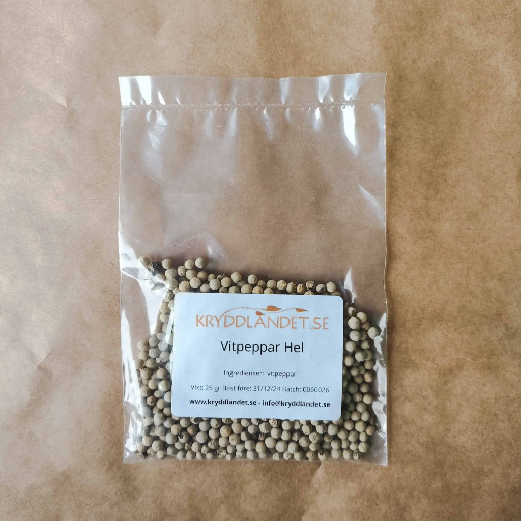 Kryddlandet är Sveriges största krydd- och tebutik. Hos Kryddlandet kan du köpa hel vitpeppar till bra pris & snabb leverans. I Kryddlandets stora pepparsortiment finns även ett brett utbud av ekologiska sorter & många förpackningsstorlekar att välja på!