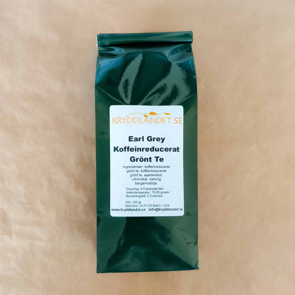Ingredienser: koffeinreducerat grönt te, apelsinskal, citronskal, naturlig bergamottolja