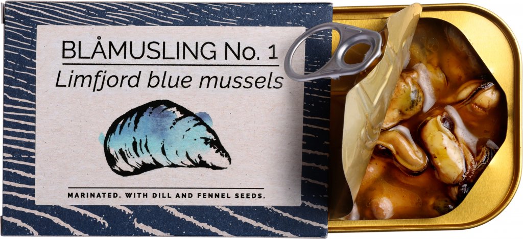 Blåmusslor från danska Limfjorden. Konserverade i kallpressad rapsolja och smaksatt med vinäger, dillfrön och fänkålsfrön.