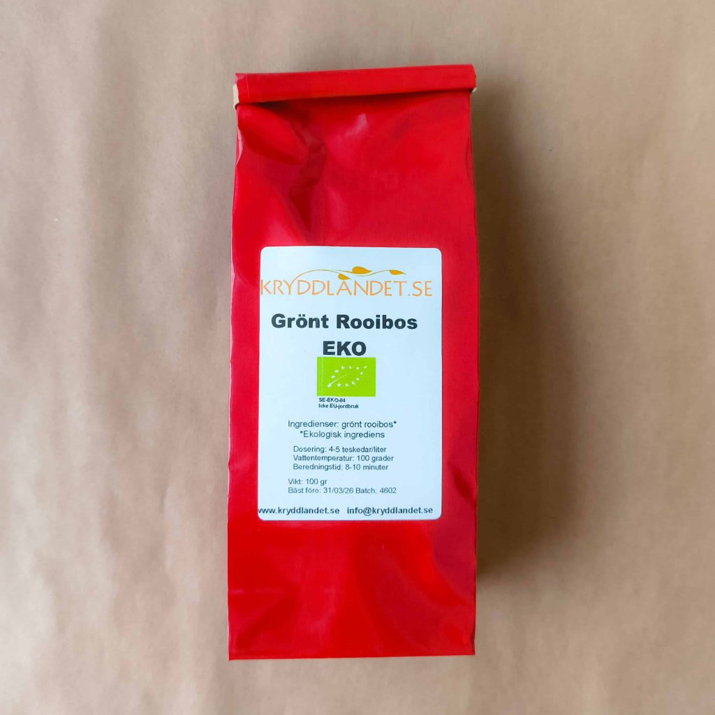 Kryddlandet är Sveriges största krydd- och tebutik. Hos Kryddlandet kan du köpa ekologiskt Grönt Rooibos te till bra pris & snabb leverans. I Kryddlandets stora sortiment finns te från världens alla hörn - i många smaker & förpackningsstorlekar, perfekt för teälskaren & alla som behöver mycket av en och samma sort.