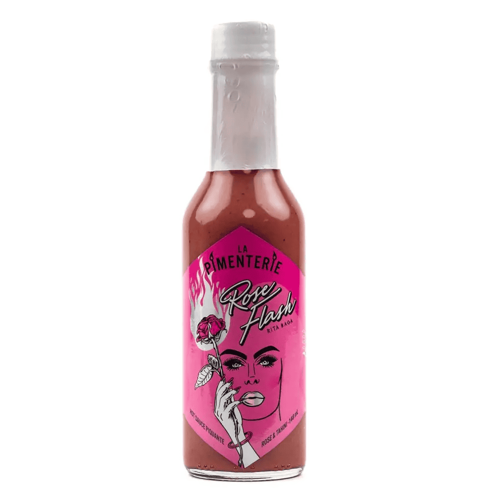 La Pimenterie våra vänner, är kanadensiska hot sauce tillverkare som gör chilisåser med unika (och mycket innovativa!) smakkombinationer. Letar du en sås som är "ovanlig", är detta en tillverkare att kika efter. Rose Flash är den milda starka såsen som innehåller rejält med hallon, blåbärstry & äpple -smaker som passar ihop & till de flesta protein. Hibiskus ger i sig inte så mycket smak - men desto mer färg, som du ser - såsen är typ rosa : ) utöver detta: thaini, tranbär, scotch bonnet, aji lemon och en hel del kryddor. Söker du en mild, syrlig, varm och kryddig sås som är något utöver det vanliga - köp denna.