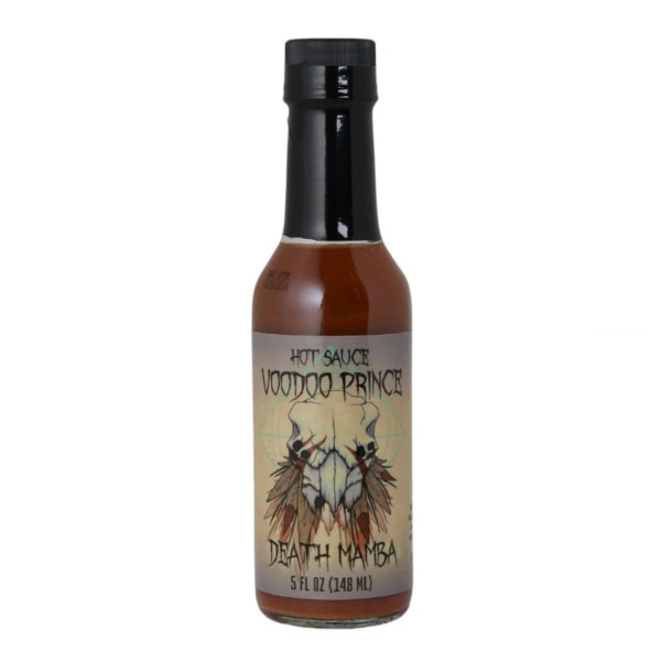 Voodoo Prince - Death Mamba är en kryddig ghostpepper (naga jolokia) sås. Ghostpepper är världens tredje starkaste chili och är grymt stark, inget att leka med. Prisvärd med mycket högt (60 % !) innehåll av naga chili - perfekt för alla som funderat på att testa men kanske inte ännu kommit dit.