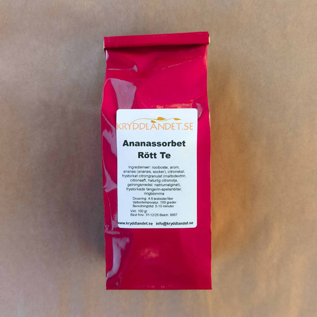 Kryddlandet är Sveriges största krydd- och tebutik. Hos Kryddlandet kan du köpa rött te med smak av ananassorbet till bra pris & snabb leverans. I Kryddlandets stora sortiment finns te från världens alla hörn - i många smaker & förpackningsstorlekar, perfekt för teälskaren & alla som behöver mycket av en och samma sort.