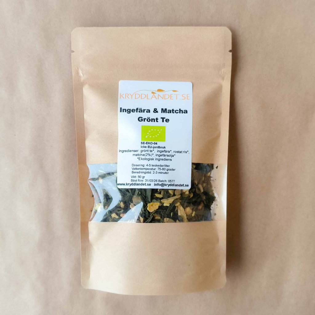 Kryddlandet är Sveriges största krydd- och tebutik. Hos Kryddlandet kan du köpa ekologiskt grönt te med smak av ingefära och matcha till bra pris & snabb leverans. I Kryddlandets stora sortiment finns te från världens alla hörn - i många smaker & förpackningsstorlekar, perfekt för teälskaren & alla som behöver mycket av en och samma sort.