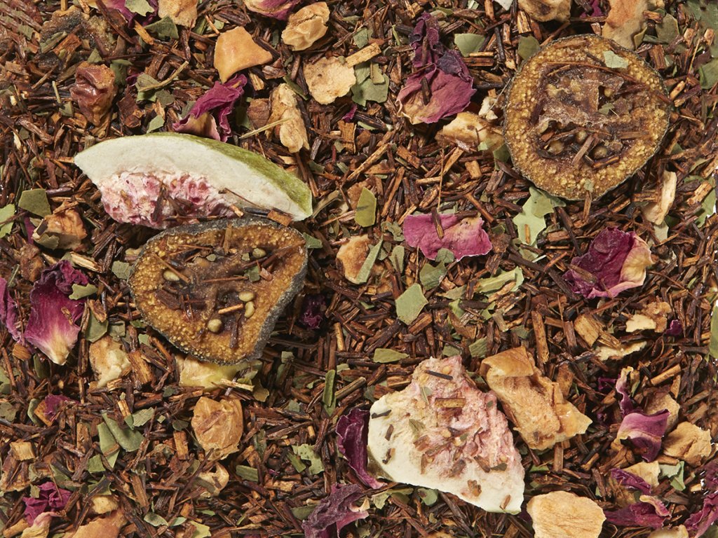 Ingredienser: Rooiboste, äpple, feijoa, brasiliansk mate (5 %), björnbärsblad, arom, frystorkade fikonbitar, rosenblad.