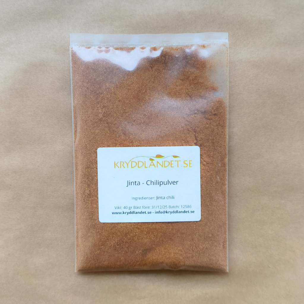 Jinta är det kinesiska namnet på puya chilin, som är en mexikansk chilisort. Chilin har djupröda frukter och används flitigt i både Asien och Centralamerika. Chilifrukten påminner om guajillo, fast med lite mer hetta och mycket fruktiga toner. Jinta är bra och pålitlig allroundchili som passar bra i såväl långkok, som smaksättare i tacos, salsa - till allt som kan behöva en spicy touch!